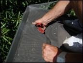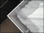 In most cases debris will clear off the roof with the wind. In areas of high levels of debris you may need to gently sweep or blow it off the roof. If your gutters have the correct fall dirt and small particles will flush out with the rain, if this is not the case you may need to flush the gutters. Please note that the mesh on your roof can be very slippery, do not walk on the mesh to reduce chance of damage and a fall.